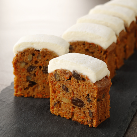 | 原材料 | にんじん(国内製造)、プロセスチーズ、液卵、小麦粉、砂糖、食用こめ油、果実加工品(レーズン、砂糖)、くるみ、アーモンドパウダ−、粉糖、水あめ、還元水あめ、クリーム、シナモンパウダ−、レモンジュース、ナツメグパウダ−、食塩、ジンジャーパウダ−/加工デンプン、炭酸水素ナトリウム、膨張剤、乳化剤、香料、ユッカ抽出物、(一部に小麦・卵・乳成分・くるみ・アーモンドを含む) |
